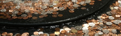 She opened her eyes, gently dropped the coin in the fountain and watched it drift to the bottom joining hundreds of other wishes.